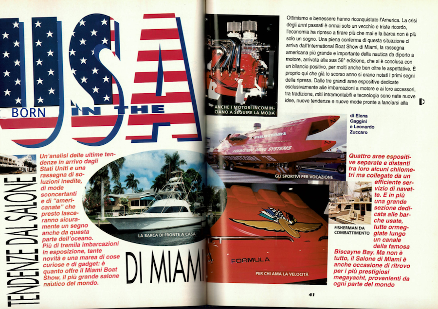 Un’analisi delle ultime tendenze in arrivo dagli Stati Uniti e una rassegna di soluzioni inedite, di mode sconcertanti e di “americanate” che presto lasceranno sicuramente un segno anche da questa parte dell’oceano. Più di tremila imbarcazioni in esposizione, tante novità e una marea di cose curiose e di gadget: è quanto offre il Miami Boat Show, il più grande salone nautico del mondo. Quattro aree espositive separate e distanti tra loro alcuni chilometri ma collegate da un efficiente servizio di navette. E in più una grande sezione dedicata alle barche usate, tutte ormeggiate lungo un canale della famosa Biscayne Bay. Ma non è tutto, il Salone di Miami è anche occasione di ritrovo per i più prestigiosi megayacht, provenienti da ogni parte del mondo.