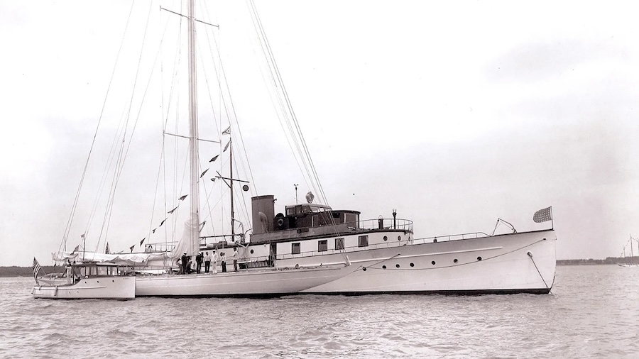 Or rather, on one in particular, a gem of Classic Boat: Bystander, America’s Cup‘s most iconic (and long-lived) support boat .
