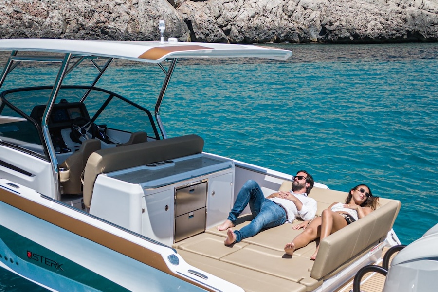 Nonostante, viste le premesse, potrebbero essere le prestazioni ad interessare maggiormente, prima però, è comunque necessario guardare a cosa questa barca abbia da offrire al di fuori della pura adrenalina. Del resto, non si tratta di un offshorer. Anzi, il 31WB è ben distante dal minimalismo tipico di uno scafo puramente dedicato alla velocità, e il suo piano di coperta ben lo dimostra. Destinato al ruolo di dayboat, e quindi alla soddisfazione delle esigenze capaci di offrire le più piacevoli e rilassanti giornate in mare, lo Sterk 31 WB non si fa infatti mancare niente. Soprattutto, di Wet Bar, ovvero il piano cucina esterno da cui il modello prende il nome, completo di frigo, lavello e piano cottura.